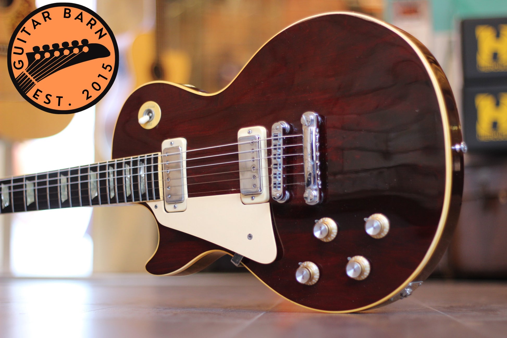 Here we have a gorgeous Gibson Les Paul Deluxe from 1979 in Wine Red. Stunning guitar and in great shape for it's age. It's actually pretty clean looking with no lacquer cracking like most from this era. It does have some scuffs, buckle rash and dings but it's colour is still a vibrant finish. The body is one piece of mahogany, again, a good thing as some from this period were sandwiched together. All original and comes with original chainsaw case.
