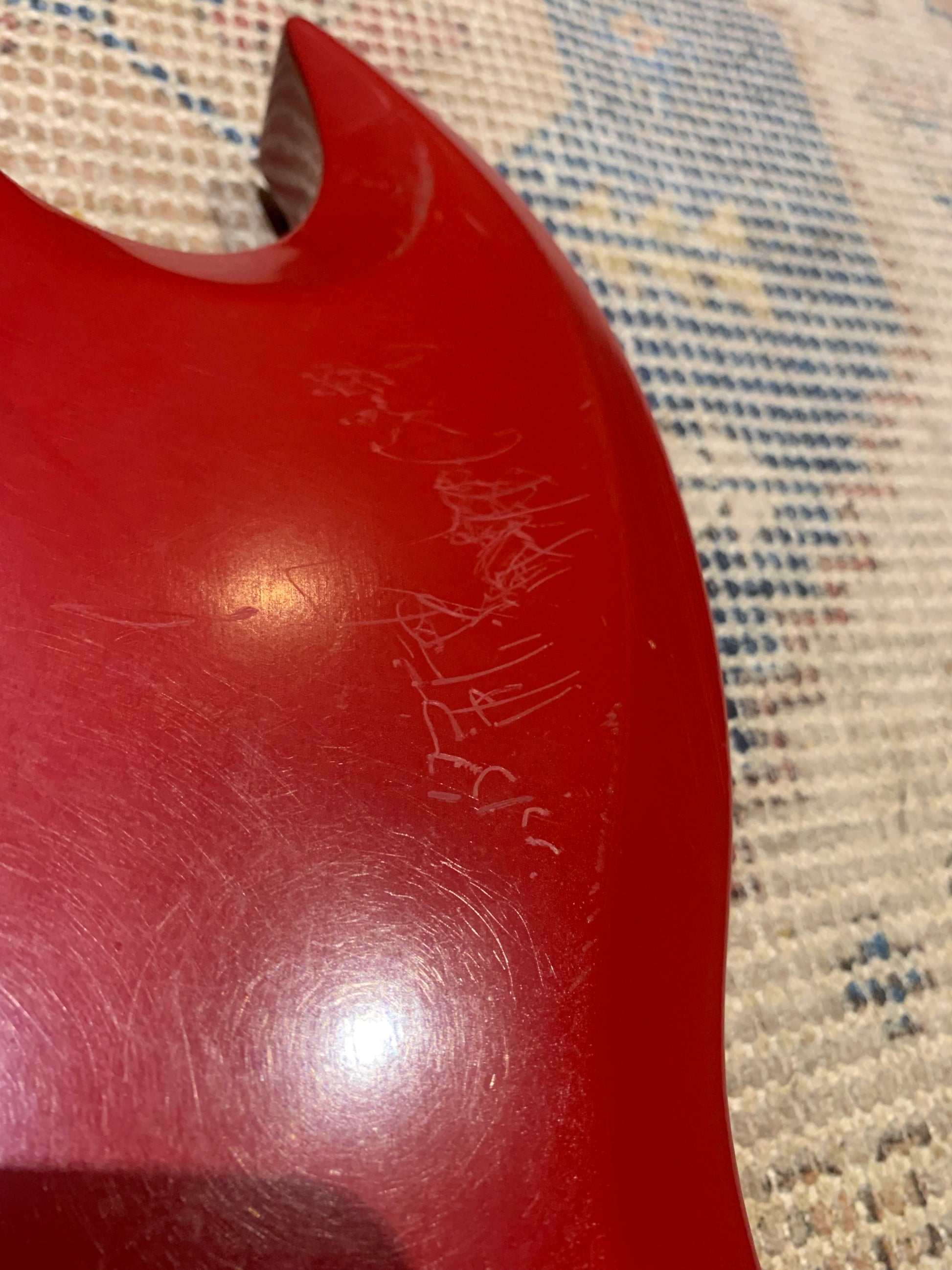 The signature is as genuine as the story I was told about how it got on to the guitar. Signed by Tony around 20 years ago at a Land Rover garage in Birmingham. Comes with a note from Tony saying “Best Wishes Tony Iommi”. If it’s a deal breaker I’ll most likely get the autograph certified.